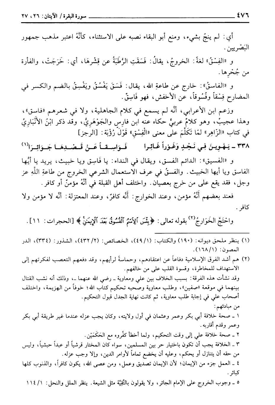 واحْتَجَّ الخَوَارجُ بقوله تعالى: {بِئْسَ الاسم الفسوق بَعْدَ الإيمان} [الحجرات: 11] .