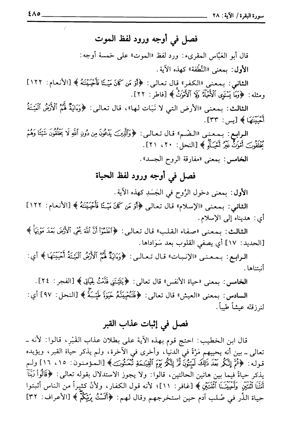 فصل في أوجه ورود لفظ الحياة