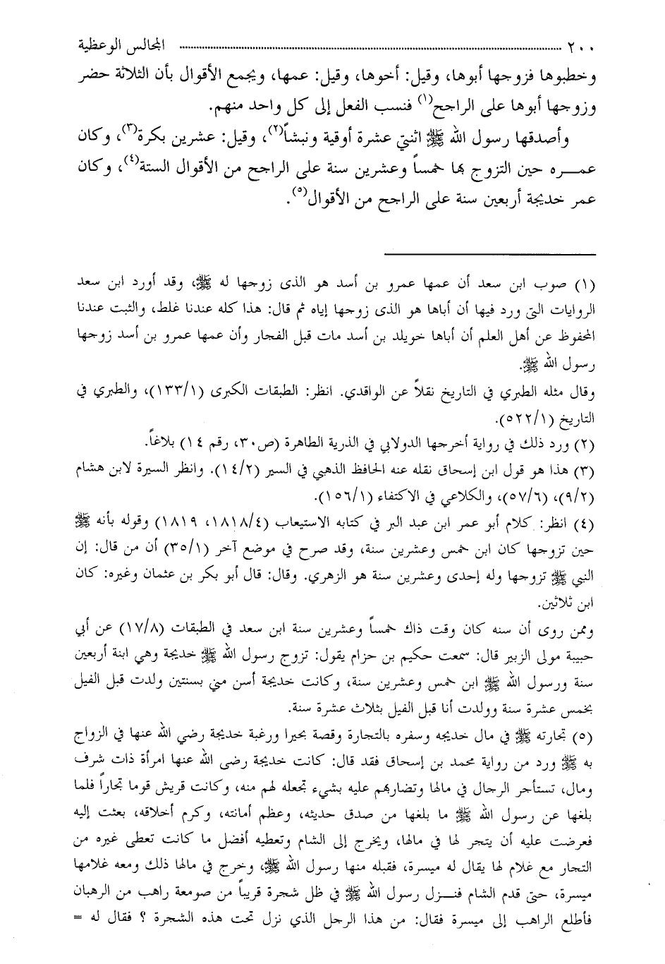 (¬4) انظر: كلام أبو عمر ابن عبد البر في كتابه الإستيعاب (4/1818، 1819) وقوله بأنه - صلى الله عليه وسلم - حين تزوجها كان ابن خمس وعشرين سنة، وقد صرح في موضع آخر (1/35) أن من قال: أن النبي - صلى الله عليه وسلم - تزوجها وله إحدى وعشرين سنة هو الزهري. وقال: قال أبو بكر بن عثمان وغيره: كان ابن ثلاثين.