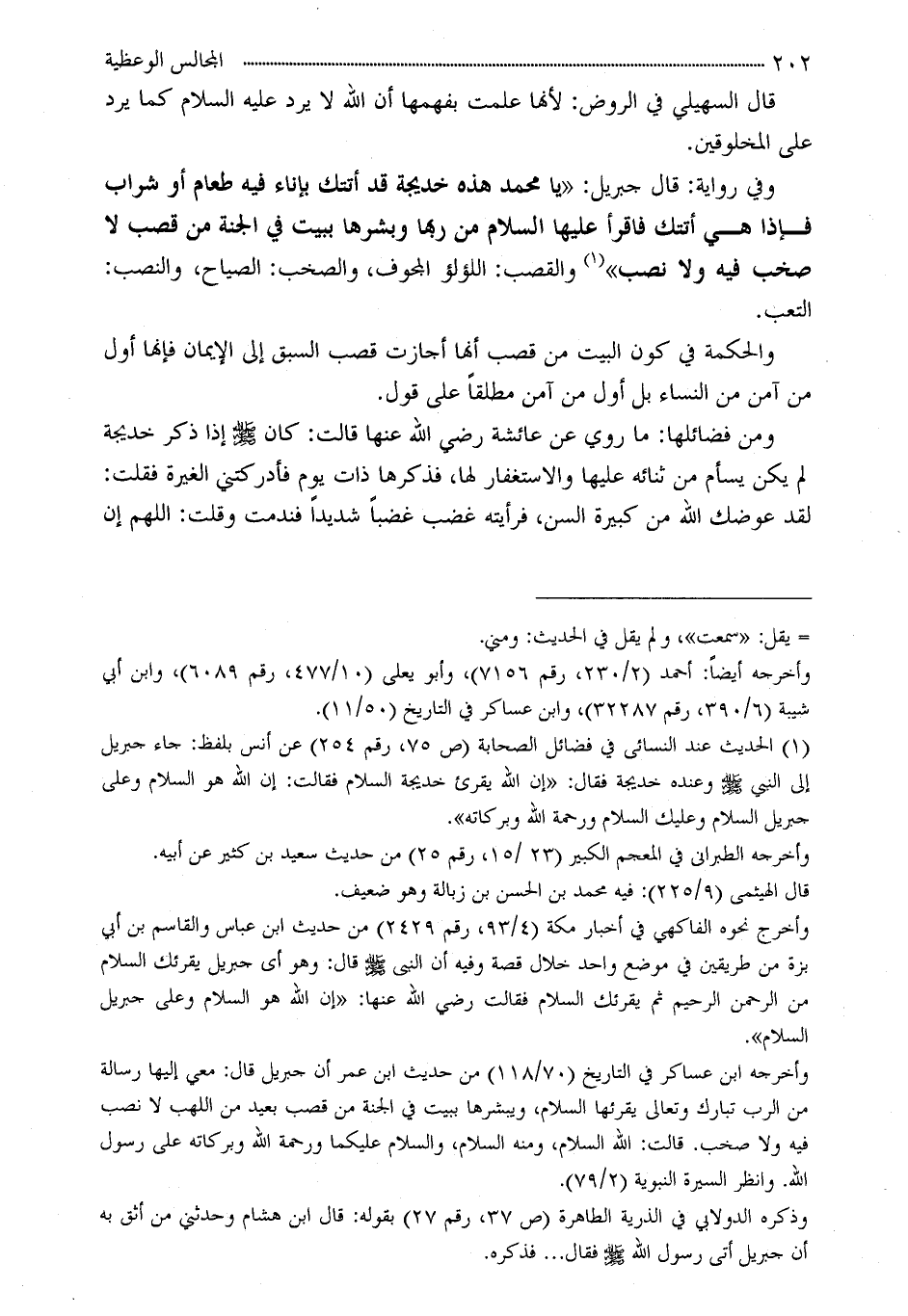 (¬1) الحديث عند النسائى في فضائل الصحابة (ص 75، رقم 254) عن أنس بلفظ: جاء جبريل إلى النبي - صلى الله عليه وسلم - وعنده خديجة فقال: «إن الله يقرئ خديجة السلام فقالت: إن الله هو السلام وعلى جبريل السلام وعليك السلام ورحمة الله وبركاته» .