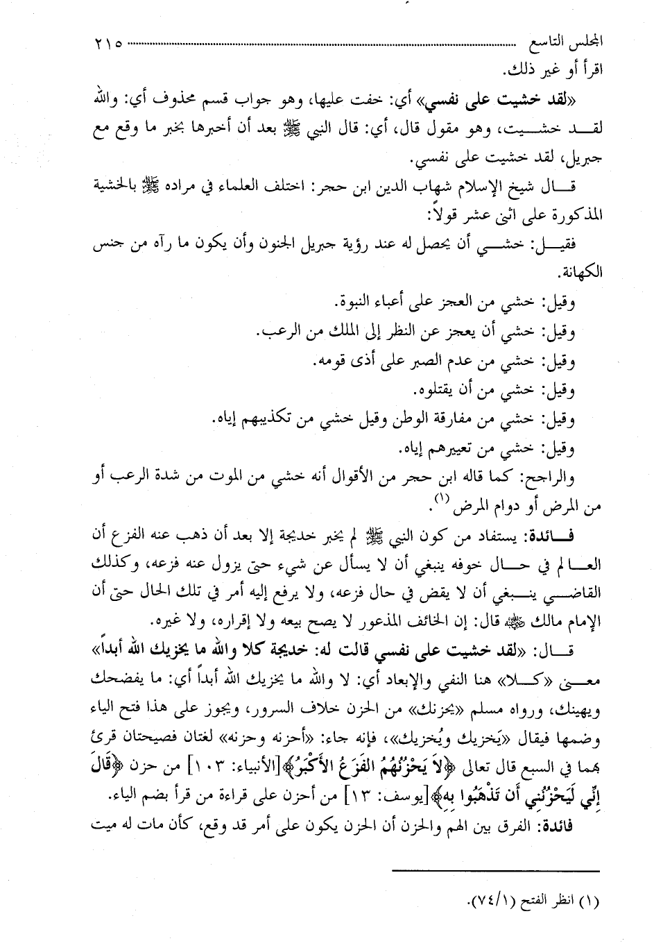 قال شيخ الإسلام شهاب الدين ابن حجر: اختلف العلماء في مراده - صلى الله عليه وسلم - بالخشية المذكورة على اثنى عشر قولاً: