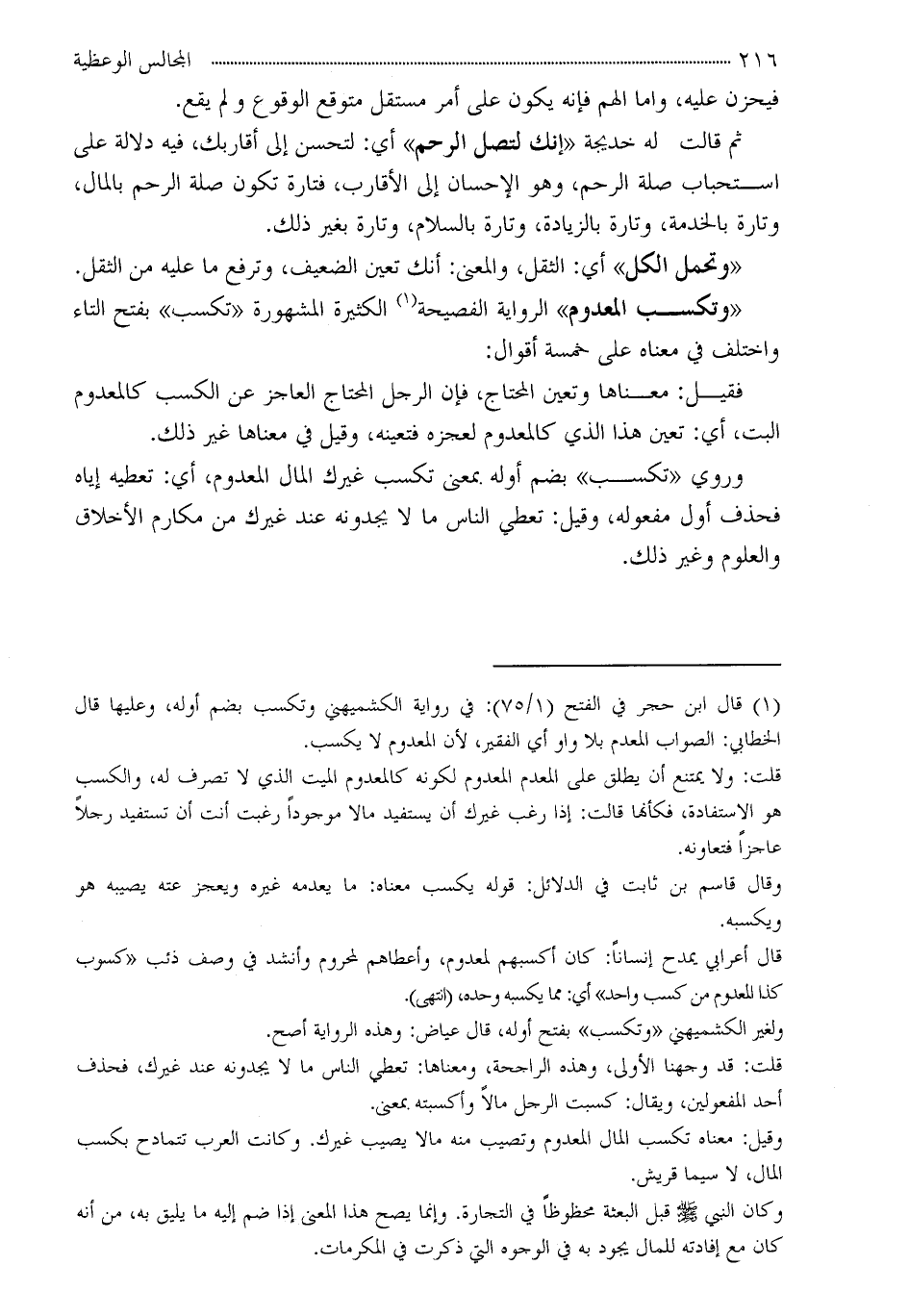 (¬1) قال ابن حجر في الفتح (1/75) : في رواية الكشميهني وتكسب بضم أوله، وعليها قال الخطابي: الصواب المعدم بلا واو أي الفقير، لأن المعدوم لا يكسب.