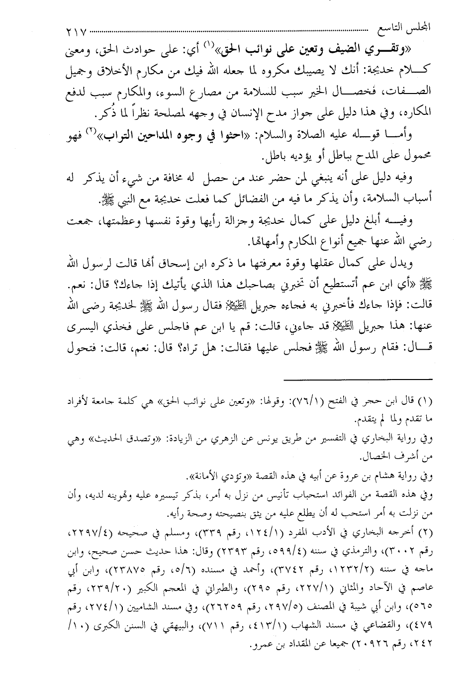 (¬1) قال ابن حجر في الفتح (1/76) : وقولها: «وتعين على نوائب الحق» هي كلمة جامعة لأفراد ما تقدم ولما لم يتقدم.