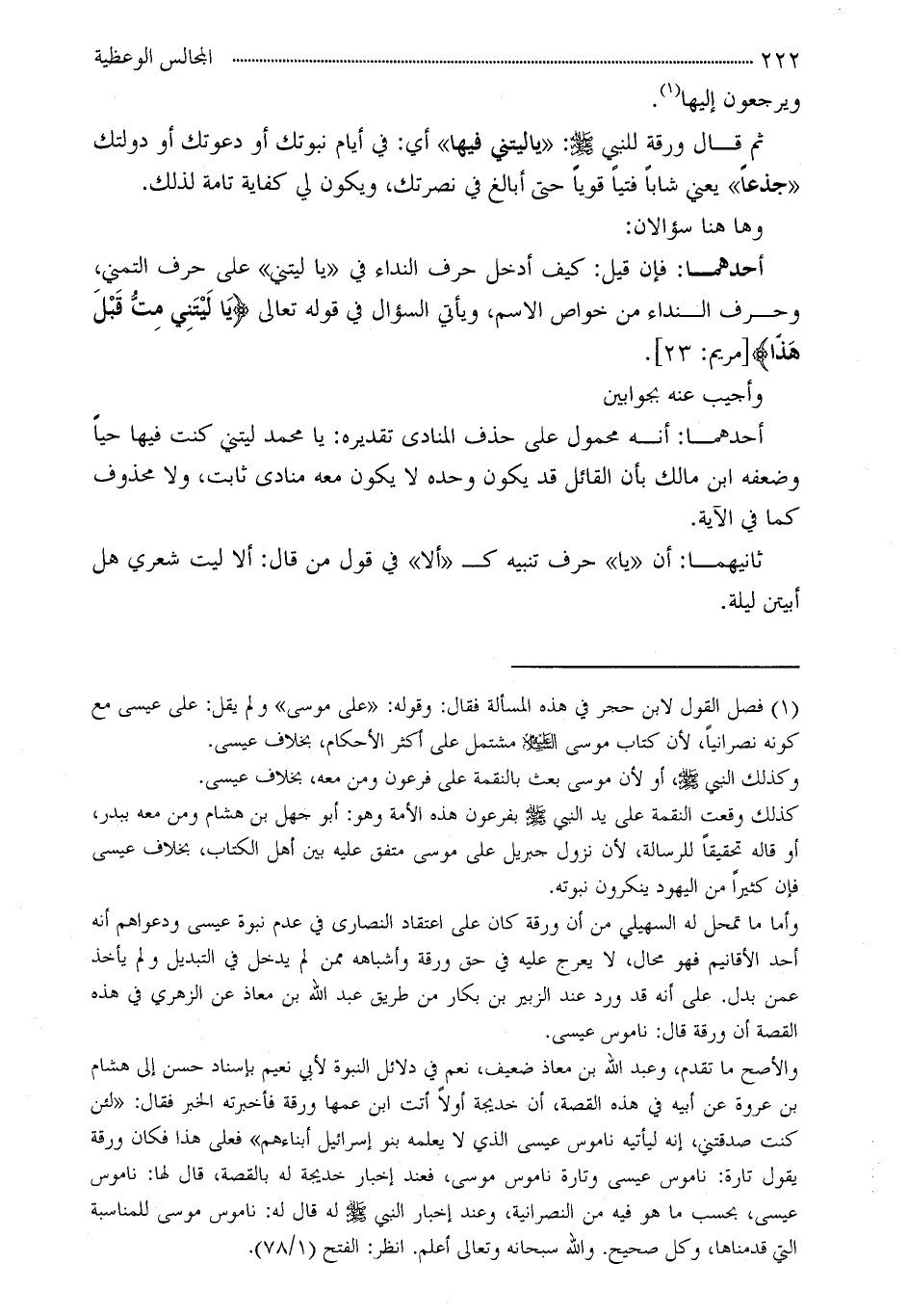 (¬1) فصل القول ابن حجر في هذه المسألة فقال: وقوله: «على موسى» ولم يقل: على عيسى مع كونه نصرانياً، لأن كتاب موسى - عليه السلام - مشتمل على أكثر الأحكام، بخلاف عيسى.