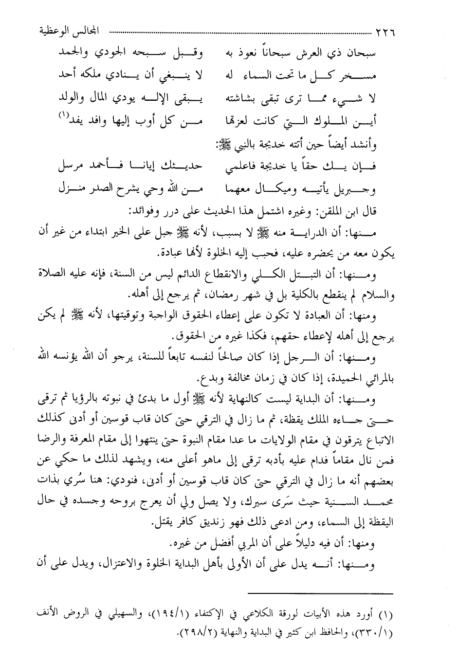 (¬1) أورد هذه الأبيات لورقة الكلاعي في الإكتفاء (1/194) ، والسهيلي في الروض الأنف (1/330) ، والحافظ ابن كثير في البداية والنهاية (2/298) .