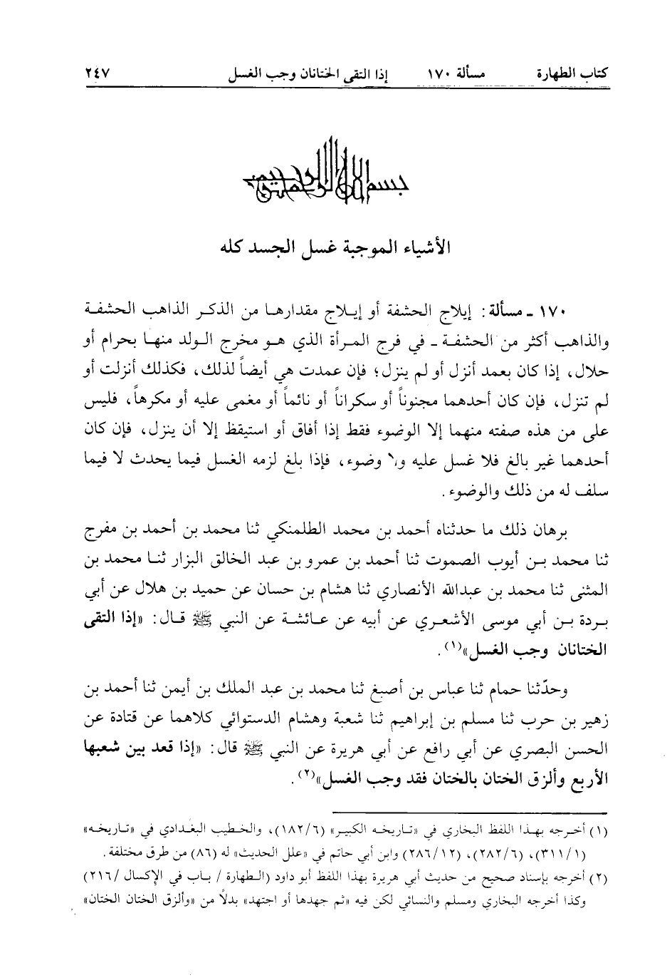 بِسْمِ اللَّهِ الرَّحْمَنِ الرَّحِيمِ الْأَشْيَاءُ الْمُوجِبَةُ غَسْلَ الْجَسَدِ كُلِّهِ