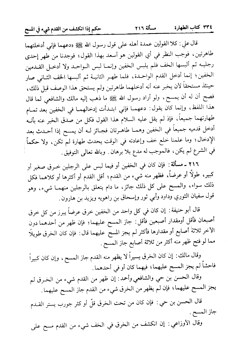 [مَسْأَلَةٌ كَانَ فِي الْخُفَّيْنِ أَوْ فِيمَا لَبِسَ عَلَى الرِّجْلَيْنِ خَرْقٌ صَغِيرٌ أَوْ كَبِيرٌ]