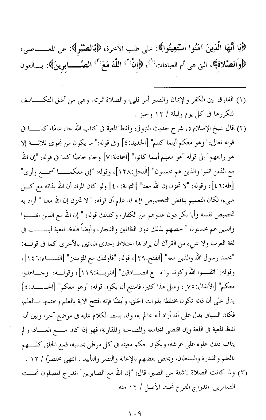 (يَا أَيُّهَا الذِينَ آمنوا استعِينُوا): على طلب الآخرة، (بالصَّبْرِ): عن المعاصي، (وَالصَّلاةِ)، التي هي أم العبادات، (إِنَّ اللهَ مَعَ الصَّابِرِينَ): بالعون