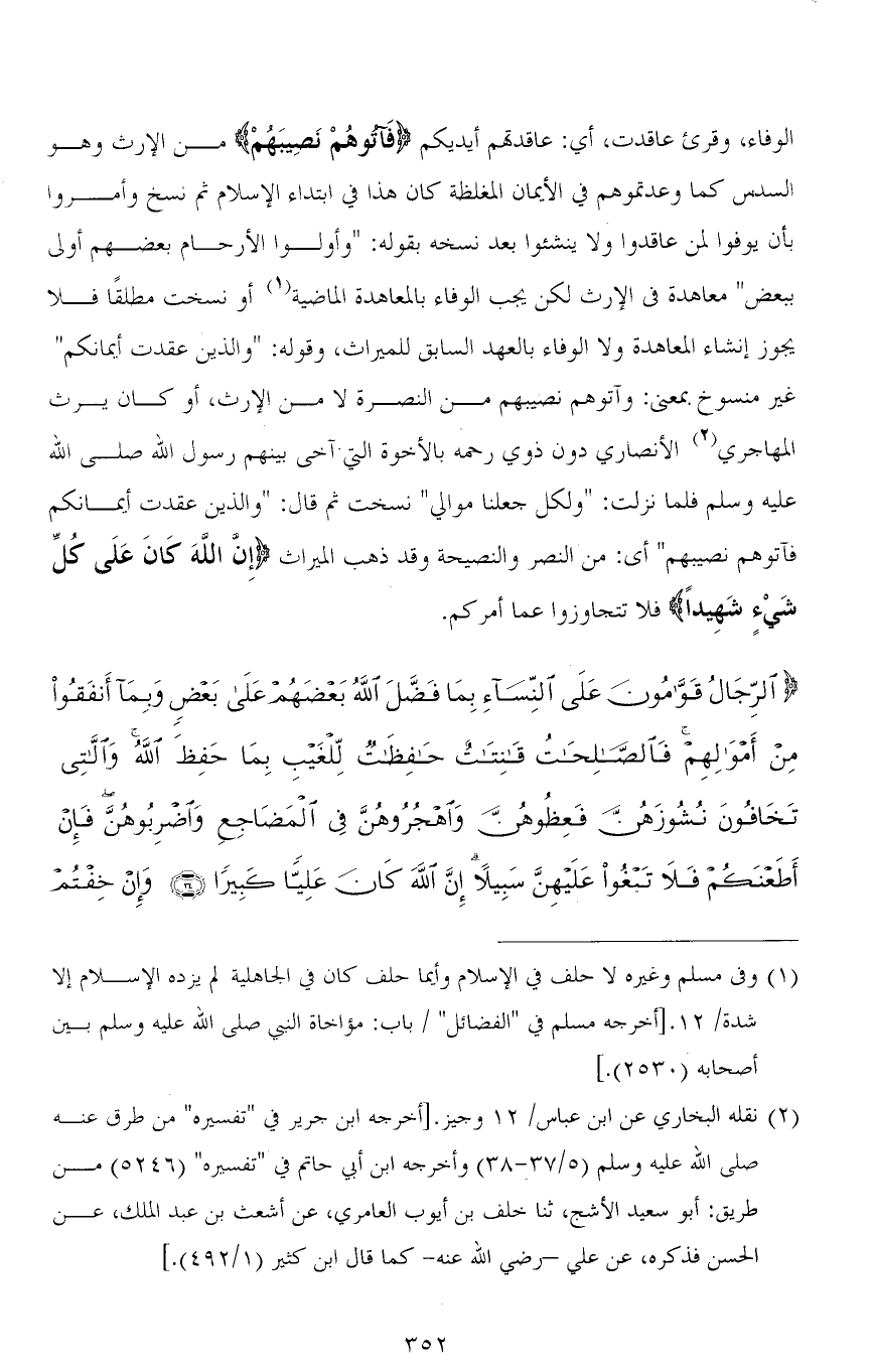 (الرِّجَالُ قَوَّامُونَ عَلَى النِّسَاءِ بِمَا فَضَّلَ اللهُ بَعْضَهُمْ عَلَى بَعْضٍ وَبِمَا أَنْفَقُوا مِنْ أَمْوَالِهِمْ فَالصَّالِحَاتُ قَانِتَاتٌ حَافِظَاتٌ لِلْغَيْبِ بِمَا حَفِظَ اللهُ وَاللَّاتِي تَخَافُونَ نُشُوزَهُنَّ فَعِظُوهُنَّ وَاهْجُرُوهُنَّ فِي الْمَضَاجِعِ وَاضْرِبُوهُنَّ فَإِنْ أَطَعْنَكُمْ فَلَا تَبْغُوا عَلَيْهِنَّ سَبِيلًا إِنَّ اللهَ كَانَ عَلِيًّا كَبِيرًا (34) وَإِنْ خِفْتُمْ