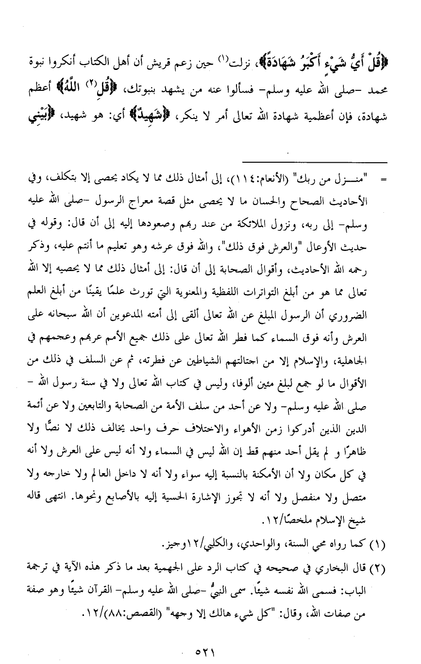 (قُلْ أَيُّ شَيْءٍ أَكْبَرُ شَهَادَةً)، نزلت حين زعم قريش أن أهل الكتاب أنكروا نبوة محمد - صلى الله عليه وسلم - فسألوا عنه من يشهد بنبوتك، (قُلِ اللهُ) أعظم شهادة، فإن أعظمية شهادة الله تعالى أمر لا ينكر، (شهِيدٌ) أي: هو شهيد، (بَيْنِي