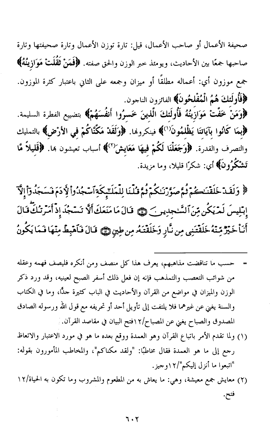 (وَمَنْ خَفتْ مَوَازَينُهُ فأُولَئِكَ الَّذِينَ خَسِرُوا أَنفُسَهُمْ) بتضييع الفطرة السليمة. (بِمَا كَانُوا بِآيَاتِنَا يَظْلِمُونَ) فينكرونها. (وَلَقَدْ مَكَّنَّاكُمْ فِي الْأَرْضِ) بالتمليك والتصرف والقدرَة. (وَجَعَلْنَا لَكُمْ فِيهَا مَعَايِشَ) أسباب تعيشون بها. (قَلِيلًا مَا تَشْكُرُونَ) أي: شكرًا قليلاً، وما مزيدة.