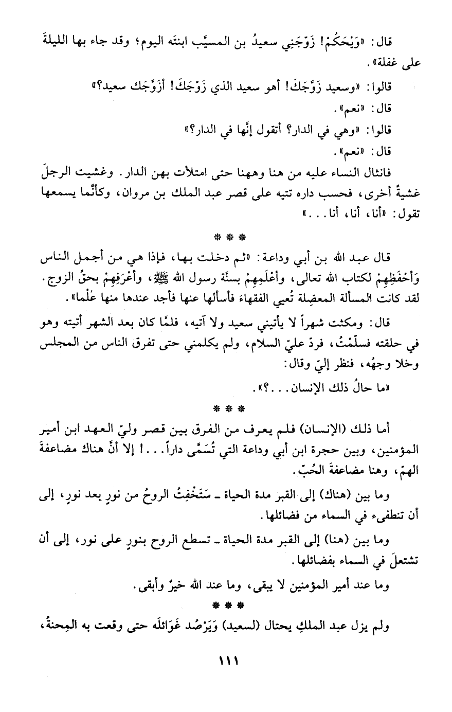 أما ذلك "الإنسان" فلم يعرف من الفرق بين قصر ولي العهد ابن أمير المؤمنين، وبين حجرة ابن أبي وداعة التي تسمى دارًا! إلا أن هناك مضاعفة الهم، وهنا مضاعفة الحب.