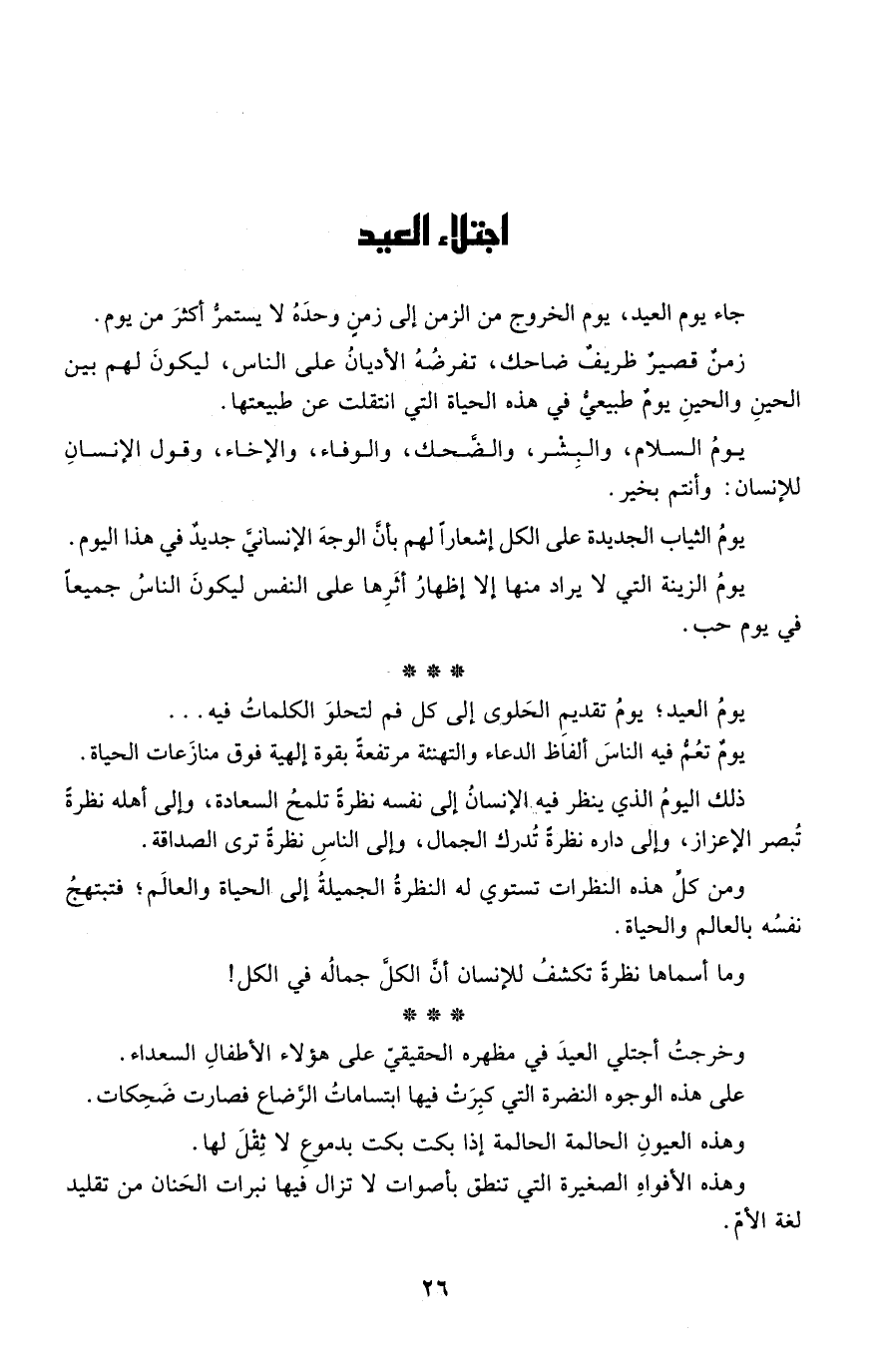 زمن قصير ظريف ضاحك، تفرضه الأديان على الناس؛ ليكون لهم بين الحين والحين يوم طبيعي في هذه الحياة التي انتقلت عن طبيعتها.