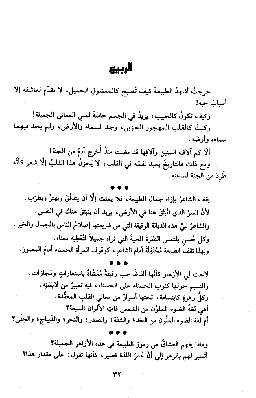 والشاعر نبي هذه الديانة الرقيقة التي من شريعتها إصلاح الناس بالجمال والخير.