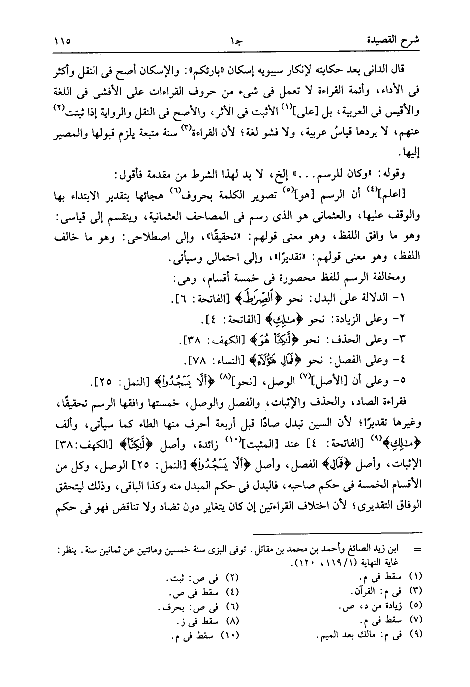 [اعلم] (¬4) أن الرسم [هو] (¬5) تصوير الكلمة بحروف (¬6) هجائها بتقدير الابتداء بها والوقف عليها، والعثمانى هو الذى رسم فى المصاحف العثمانية، وينقسم إلى قياسي: