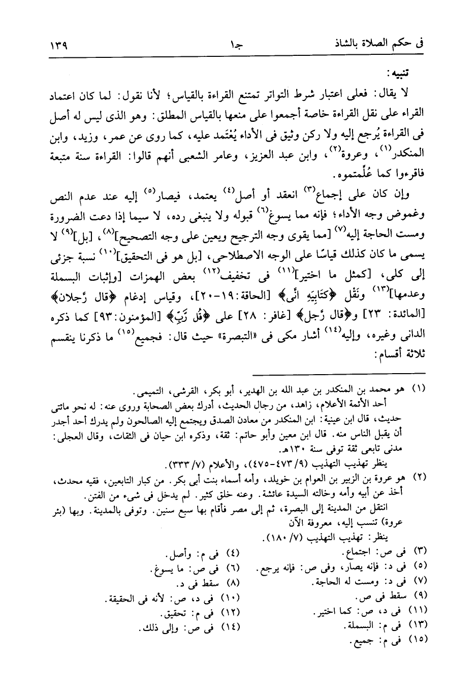 لا يقال: فعلى اعتبار شرط التواتر تمتنع القراءة بالقياس؛ لأنا نقول: لما كان اعتماد القراء على نقل القراءة خاصة أجمعوا على منعها بالقياس المطلق: وهو الذى ليس له أصل فى القراءة يرجع إليه ولا ركن وثيق فى الأداء يعتمد عليه، كما روى عن عمر، وزيد، وابن المنكدر (¬1)، وعروة (¬2)، وابن عبد العزيز، وعامر الشعبى أنهم قالوا: القراءة سنة متبعة فاقرءوا كما علّمتموه.