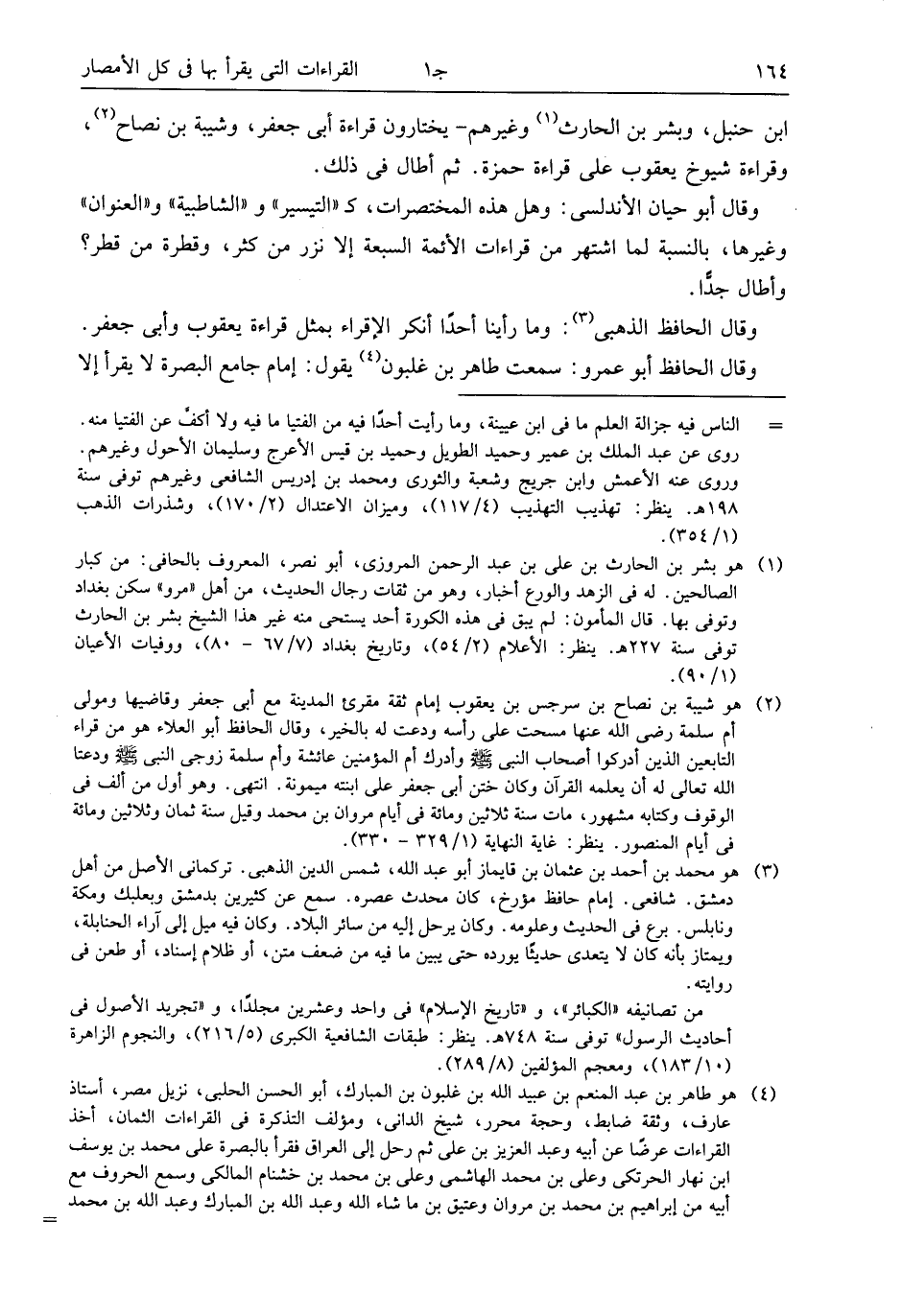 ابن حنبل، وبشر بن الحارث (¬1) وغيرهم- يختارون قراءة أبى جعفر، وشيبة بن نصاح (¬2)، وقراءة شيوخ يعقوب على قراءة حمزة. ثم أطال فى ذلك.