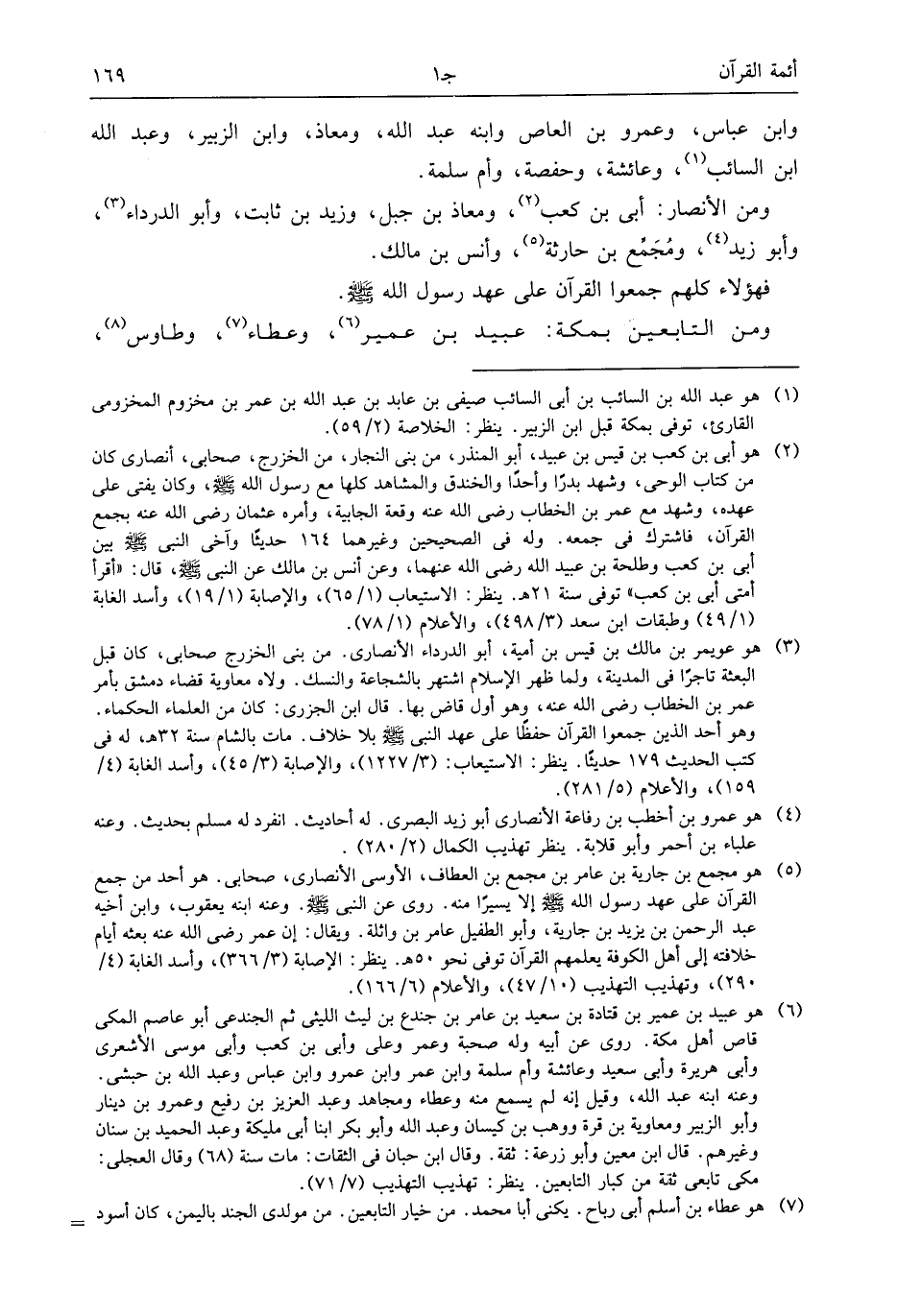 ومن الأنصار: أبى بن كعب (¬2)، ومعاذ بن جبل، وزيد بن ثابت، وأبو الدرداء (¬3)، وأبو زيد (¬4)، ومجمّع بن حارثة (¬5)، وأنس بن مالك.