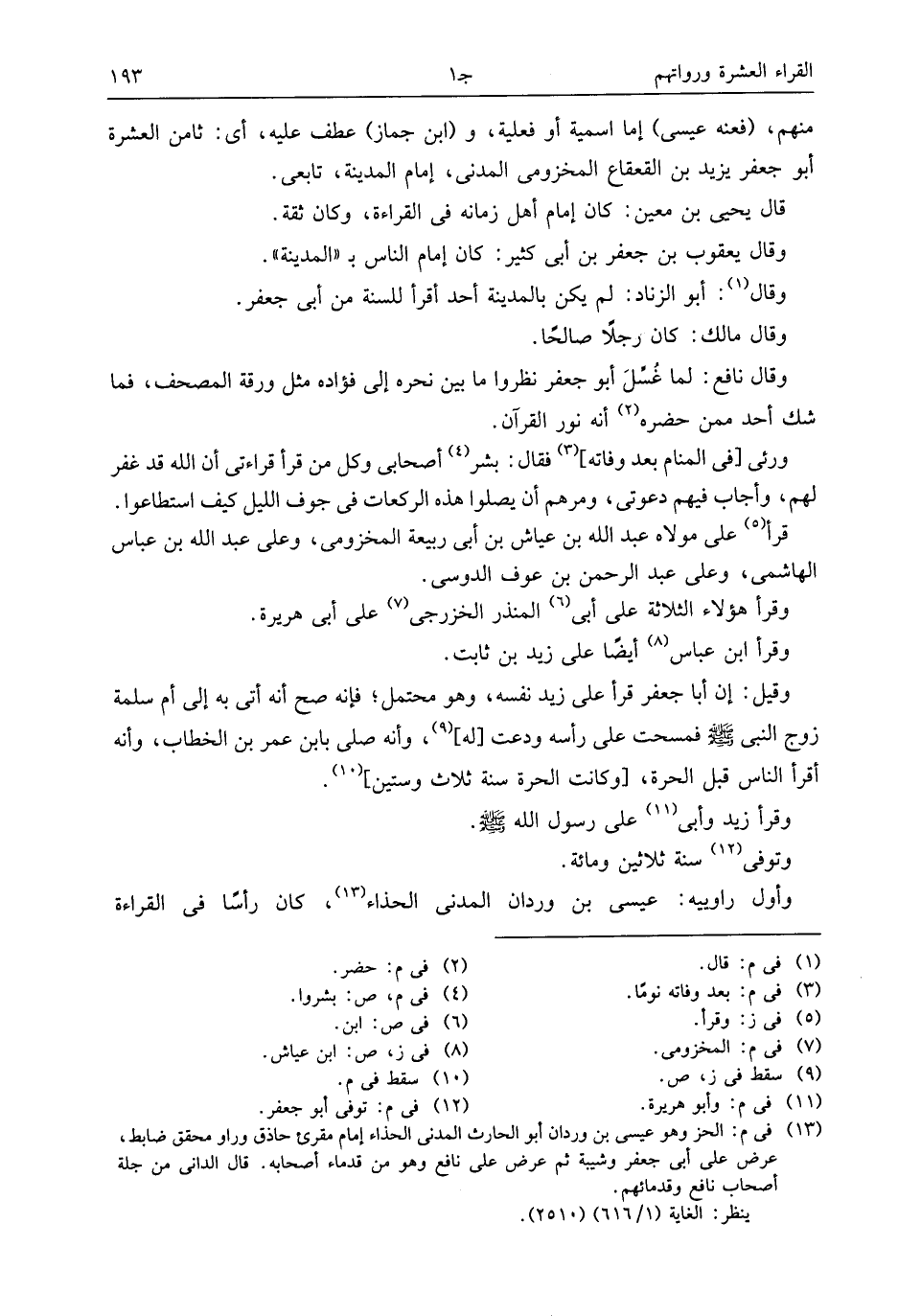 (¬13) فى م: الحز وهو عيسى بن وردان أبو الحارث المدنى الحذاء إمام مقرئ حاذق وراو محقق ضابط، عرض على أبى جعفر وشيبة ثم عرض على نافع وهو من قدماء أصحابه. قال الدانى من جلة أصحاب نافع وقدمائهم.