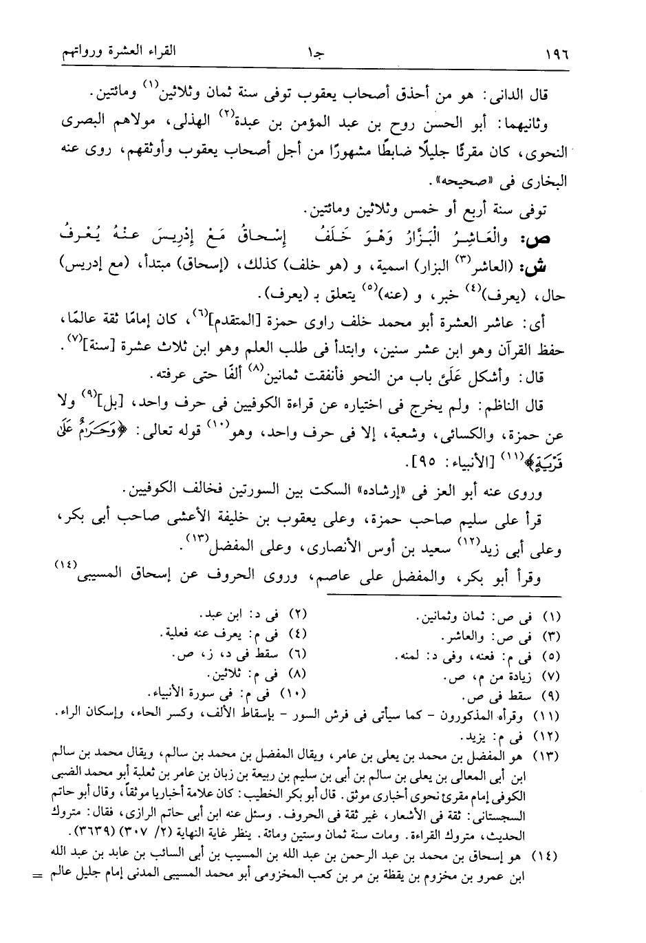 (¬13) هو المفضل بن محمد بن يعلى بن عامر، ويقال المفضل بن محمد بن سالم، ويقال محمد بن سالم ابن أبى المعالى بن يعلى بن سالم بن أبى بن سليم بن ربيعة بن زبان بن عامر بن ثعلبة أبو محمد الضبى الكوفى إمام مقرئ نحوى أخبارى موثق. قال أبو بكر الخطيب: كان علامة أخباريا موثقا، وقال أبو حاتم السجستانى: ثقة فى الأشعار، غير ثقة فى الحروف. وسئل عنه ابن أبى حاتم الرازى، فقال: متروك الحديث، متروك القراءة. ومات سنة ثمان وستين ومائة. ينظر غاية النهاية (2/ 307) (3639).