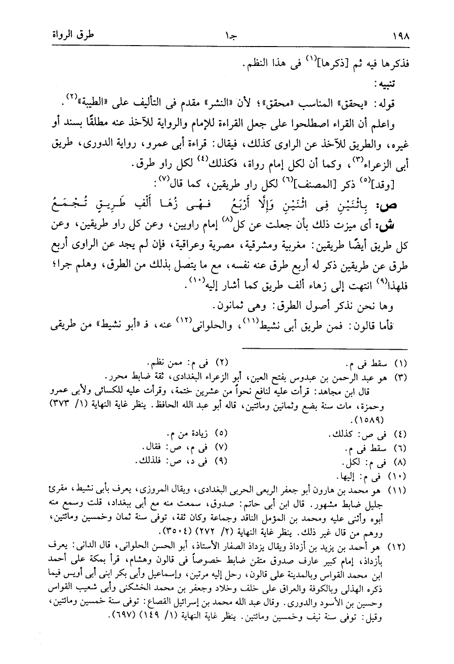 قوله: «يحقق» المناسب «محقق»؛ لأن «النشر» مقدم فى التأليف على «الطيبة» (¬2).