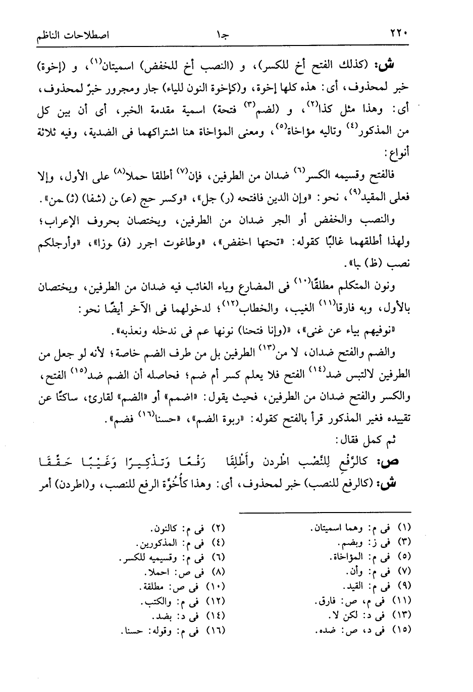 والنصب والخفض أو الجر ضدان من الطرفين، ويختصان بحروف الإعراب؛ ولهذا أطلقهما غالبا كقوله: «تحتها اخفض»، «وطاغوت اجرر (ف) وزا»، «وأرجلكم نصب (ظ) با».