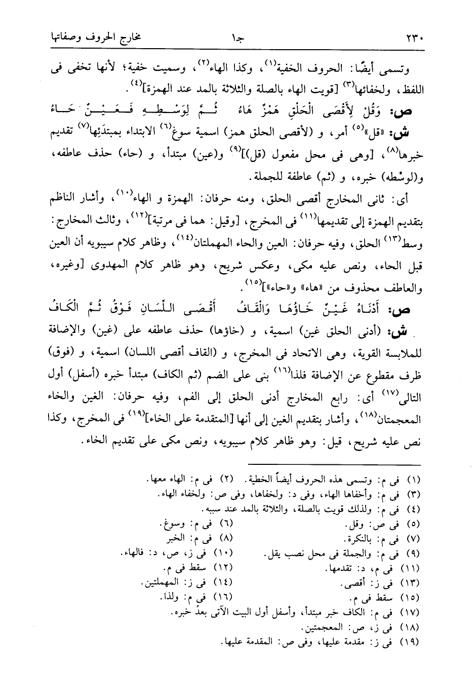 (¬1) فى م: وتسمى هذه الحروف أيضا الخطية.
