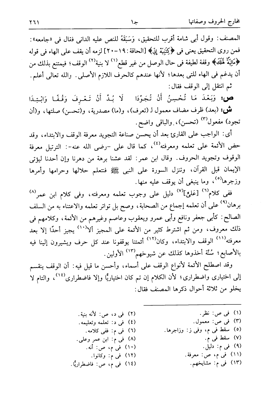 المصنف: وقول أبى شامة أقرب للتحقيق، وسبقه للنص عليه الدانى فقال فى «جامعه»: