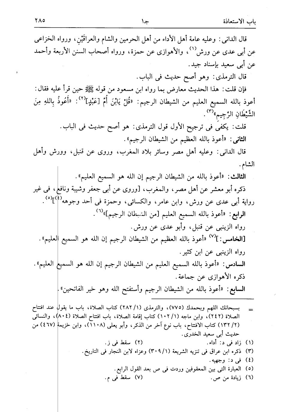 الرابع: «أعوذ بالله السميع العليم [من الشيطان الرجيم]» (¬6).