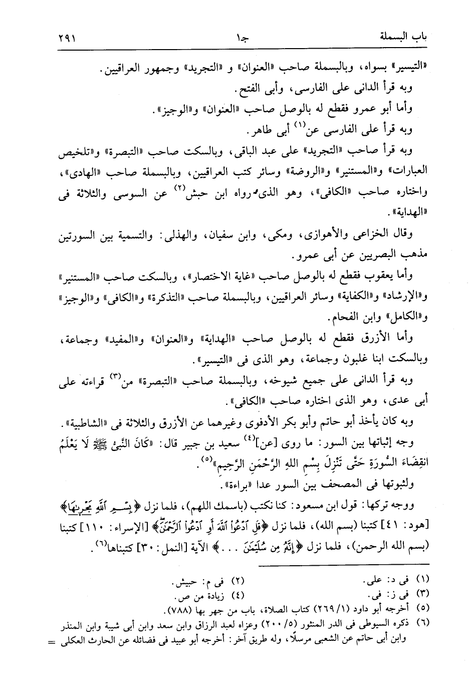 «التيسير» بسواه، وبالبسملة صاحب «العنوان» و «التجريد» وجمهور العراقيين.