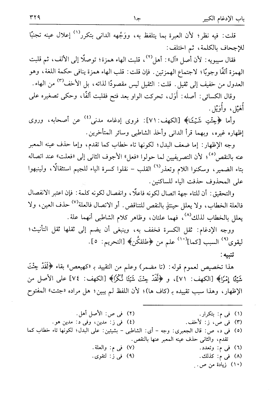 وأما جِئْتَ شَيْئاً [الكهف: 71]: فروى إدغامه مدنى (¬4) عن أصحابه، وروى إظهاره غيره، وبهما قرأ الدانى وأخذ الشاطبى وسائر المتأخرين.