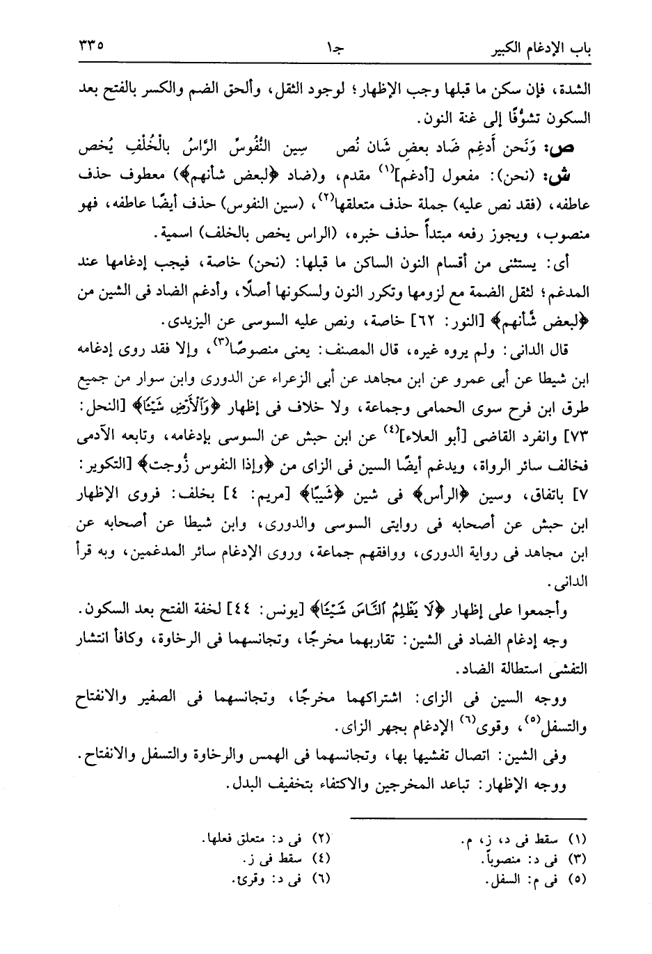 وأجمعوا على إظهار لا يَظْلِمُ النَّاسَ شَيْئاً [يونس: 44] لخفة الفتح بعد السكون.