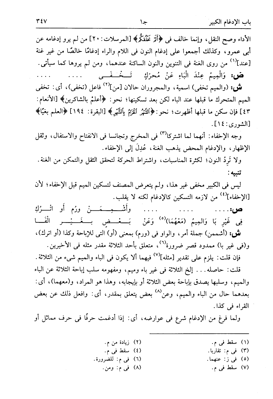 ليس فى الكبير مخفى غير هذا، ولم يتعرض المصنف لتسكين الميم قبل الإخفاء؛ لأن [الإخفاء] (¬4) من لازمه التسكين كالإدغام لكنه لا يقلب.