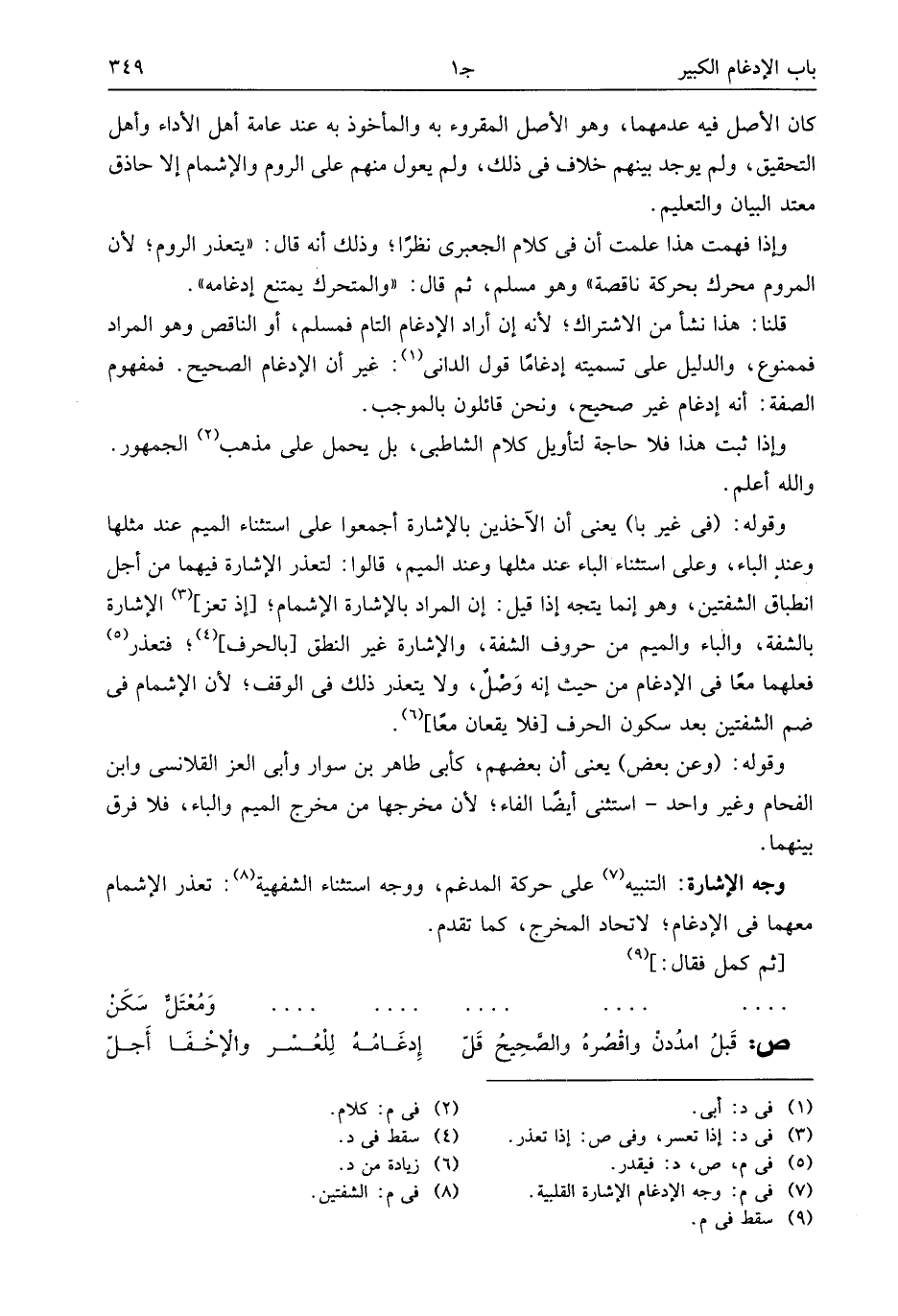 قلنا: هذا نشأ من الاشتراك؛ لأنه إن أراد الإدغام التام فمسلم، أو الناقص وهو المراد فممنوع، والدليل على تسميته إدغاما قول الدانى (¬1): غير أن الإدغام الصحيح. فمفهوم الصفة: أنه إدغام غير صحيح، ونحن قائلون بالموجب.