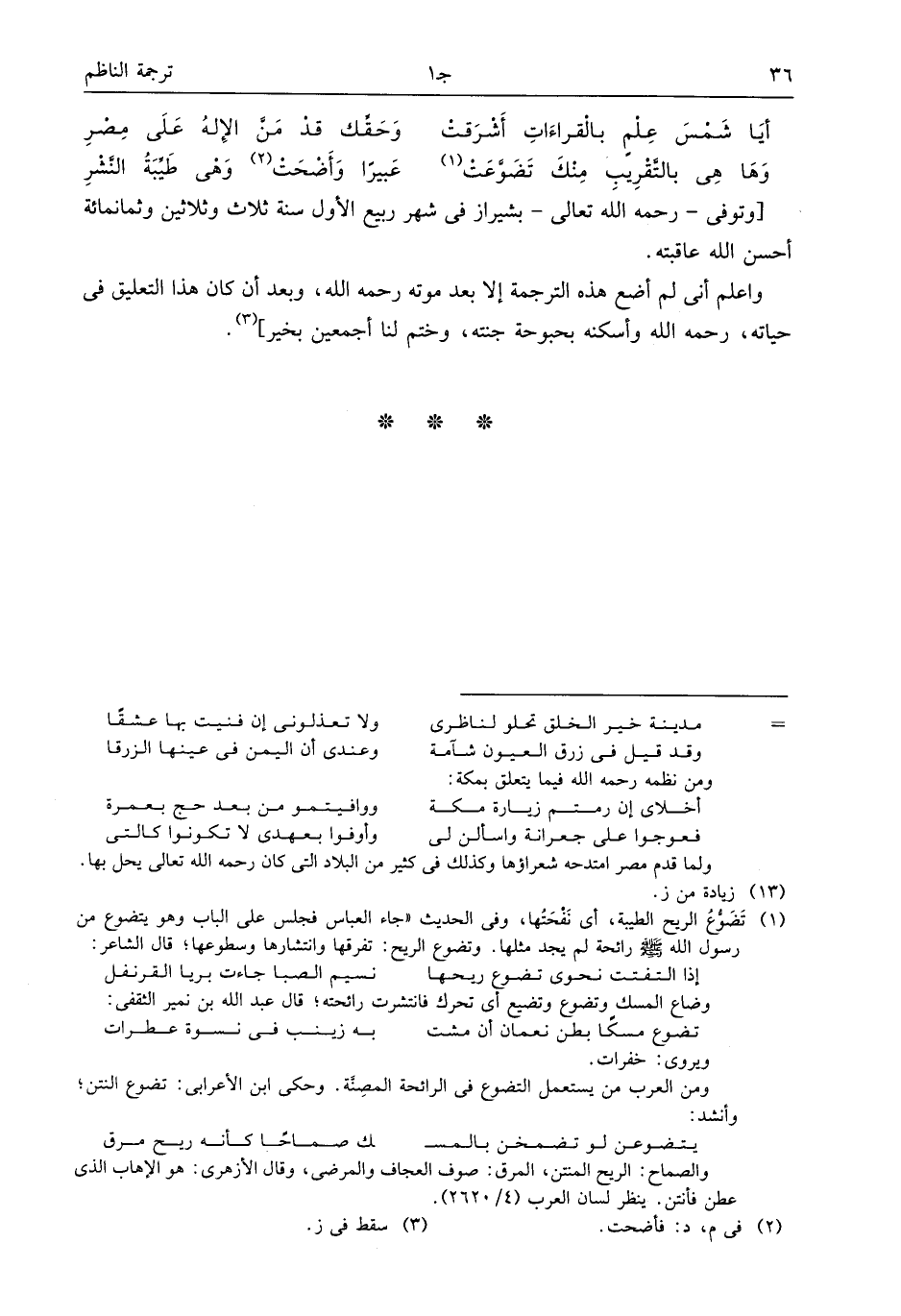 واعلم أنى لم أضع هذه الترجمة إلا بعد موته رحمه الله، وبعد أن كان هذا التعليق فى حياته، رحمه الله وأسكنه بحبوحة جنته، وختم لنا أجمعين بخير] (¬3).