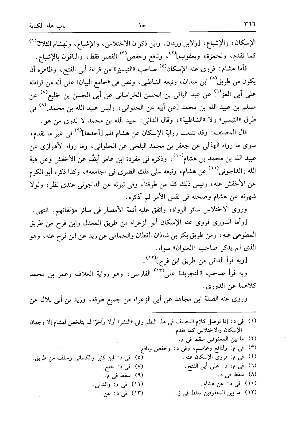 فأما هشام: فروى عنه الإسكان (¬4) صاحب «التيسيز» من قراءة أبى الفتح، وظاهره أن يكون من طريق (¬5) ابن عبدان، وتبعه الشاطبى، ونص فى «جامع البيان» على أنه من قراءته على أبى العز (¬6) عن عبد الباقى بن الحسن الخراسانى عن أبى الحسن بن خليع (¬7) عن مسلم بن عبيد الله بن محمد [عن أبيه عن الحلوانى، وليس عبيد الله بن محمد] (¬8) فى طرق «التيسير» ولا «الشاطبية»، وقال الدانى: عبيد الله بن محمد لا ندرى من هو.