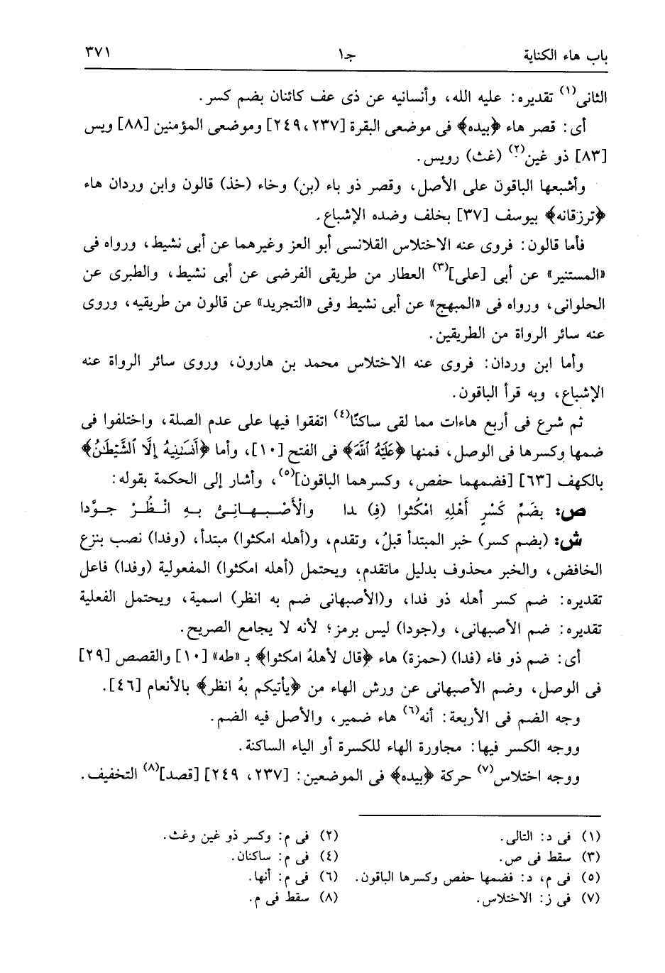 ووجه اختلاس (¬7) حركة بِيَدِهِ* فى الموضعين: [237، 249] [قصد] (¬8) التخفيف.