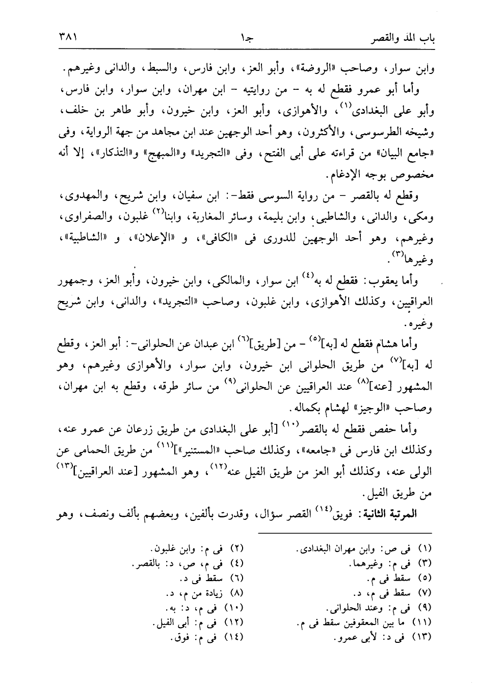 وابن سوار، وصاحب «الروضة»، وأبو العز، وابن فارس، والسبط، والدانى وغيرهم.