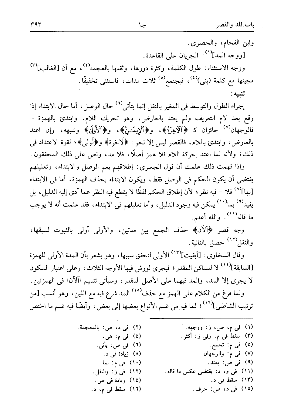 وإذا فهمت ذلك علمت أن قول الجعبرى: إطلاقهم يعم الوصل والابتداء، وتعليلهم يقتضى أن يكون الحكم فى الوصل فقط، ويكون الابتداء بحذف الهمزة، أما فى الابتداء [بها] (¬8) فلا- فيه نظر؛ لأن إطلاق الحكم لفظا لا يقطع فيه النظر عما أدى إليه الدليل، بل يفيد (¬9) بما (¬10) يمكن فيه وجود الدليل، وأما تعليلهم فى الابتداء، فقد علمت أنه لا يوجب ما قاله (¬11). والله أعلم.