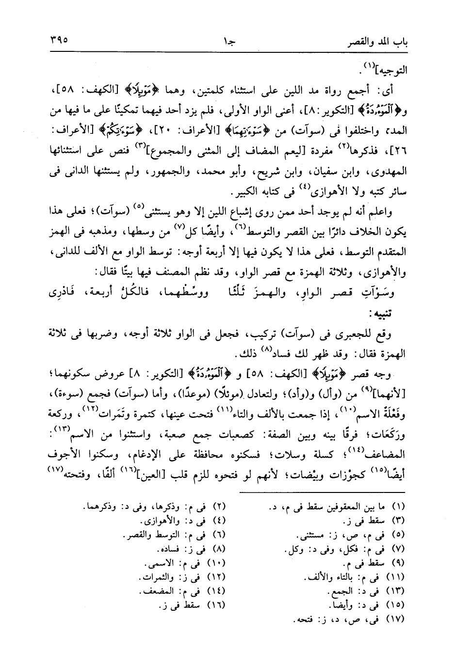 26]، فذكرها (¬2) مفردة [ليعم المضاف إلى المثنى والمجموع] (¬3) فنص على استثنائها المهدوى، وابن سفيان، وابن شريح، وأبو محمد، والجمهور، ولم يستثنها الدانى فى سائر كتبه ولا الأهوازى (¬4) فى كتابه الكبير.