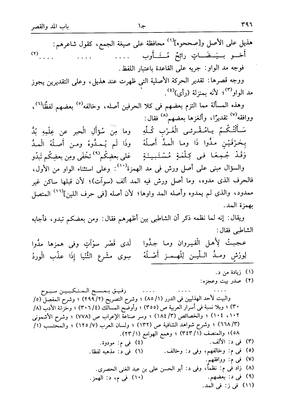 ووجه قصرها: تقدير الحركة الأصلية التى ظهرت عند هذيل، وعلى التقديرين يجوز مد الواو (¬3)؛ لأنه بمنزلة (رأى) (¬4).