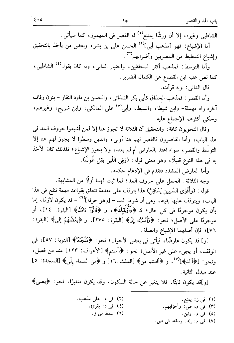 وأما القصر: فمذهب الحذاق كأبى بكر الشذائى، والحسن بن داود النقار- بنون وقاف آخره راء مهملة- وابن شيطا، والسبط، وأبى (¬5) على المالكى، وابن شريح، وغيرهم، وحكى أكثرهم الإجماع عليه.