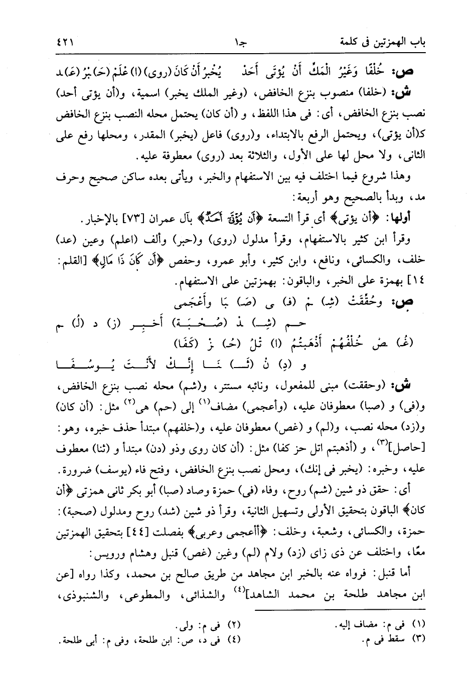 أولها: أَنْ يُؤْتى أى قرأ التسعة أَنْ يُؤْتى أَحَدٌ بآل عمران [73] بالإخبار.