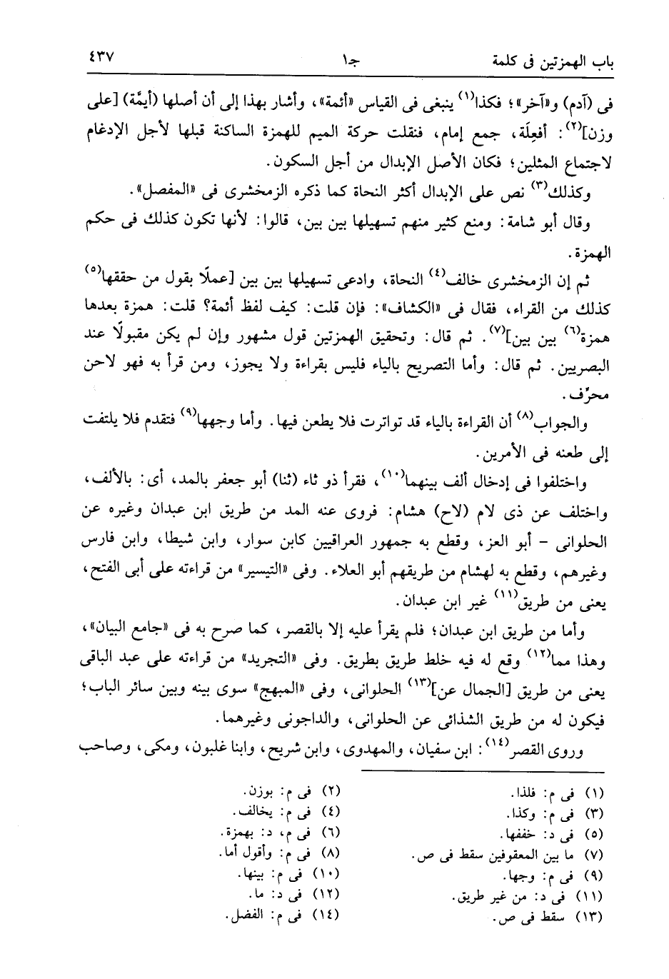 ثم إن الزمخشرى خالف (¬4) النحاة، وادعى تسهيلها بين بين [عملا بقول من حققها (¬5) كذلك من القراء، فقال فى «الكشاف»: فإن قلت: كيف لفظ أئمة؟ قلت: همزة بعدها همزة (¬6) بين بين] (¬7). ثم قال: وتحقيق الهمزتين قول مشهور وإن لم يكن مقبولا عند البصريين. ثم قال: وأما التصريح بالياء فليس بقراءة ولا يجوز، ومن قرأ به فهو لاحن محرّف.