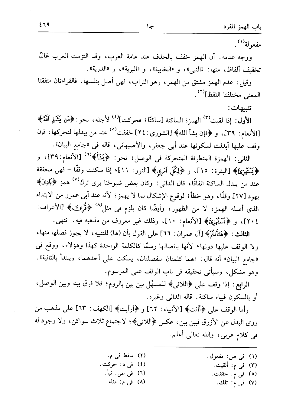 وهو مشكل، وسيأتى تحقيقه فى باب الوقف على المرسوم.