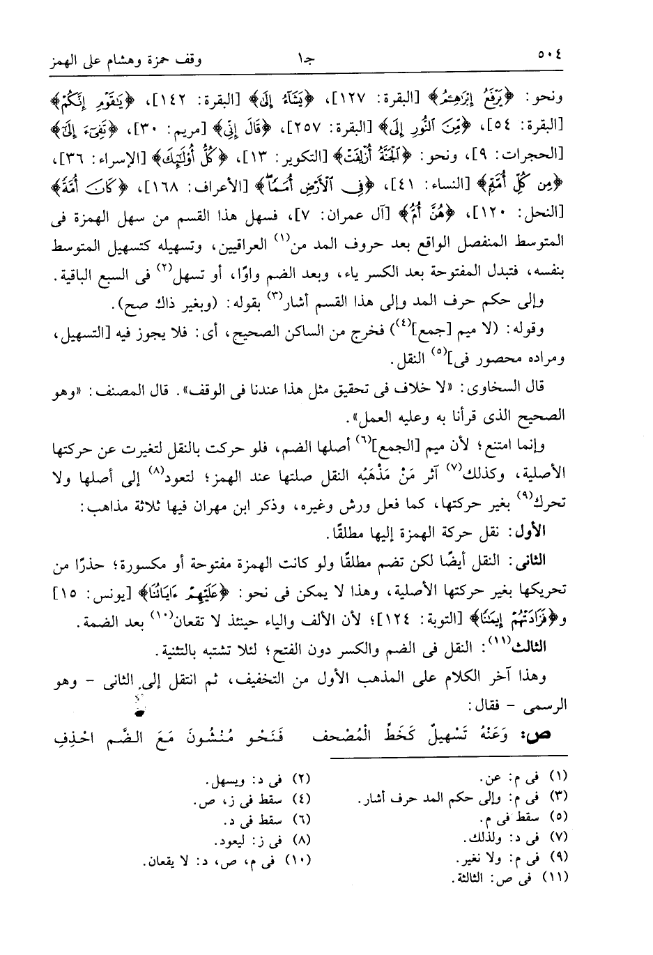 قال السخاوى: «لا خلاف فى تحقيق مثل هذا عندنا فى الوقف». قال المصنف: «وهو الصحيح الذى قرأنا به وعليه العمل».
