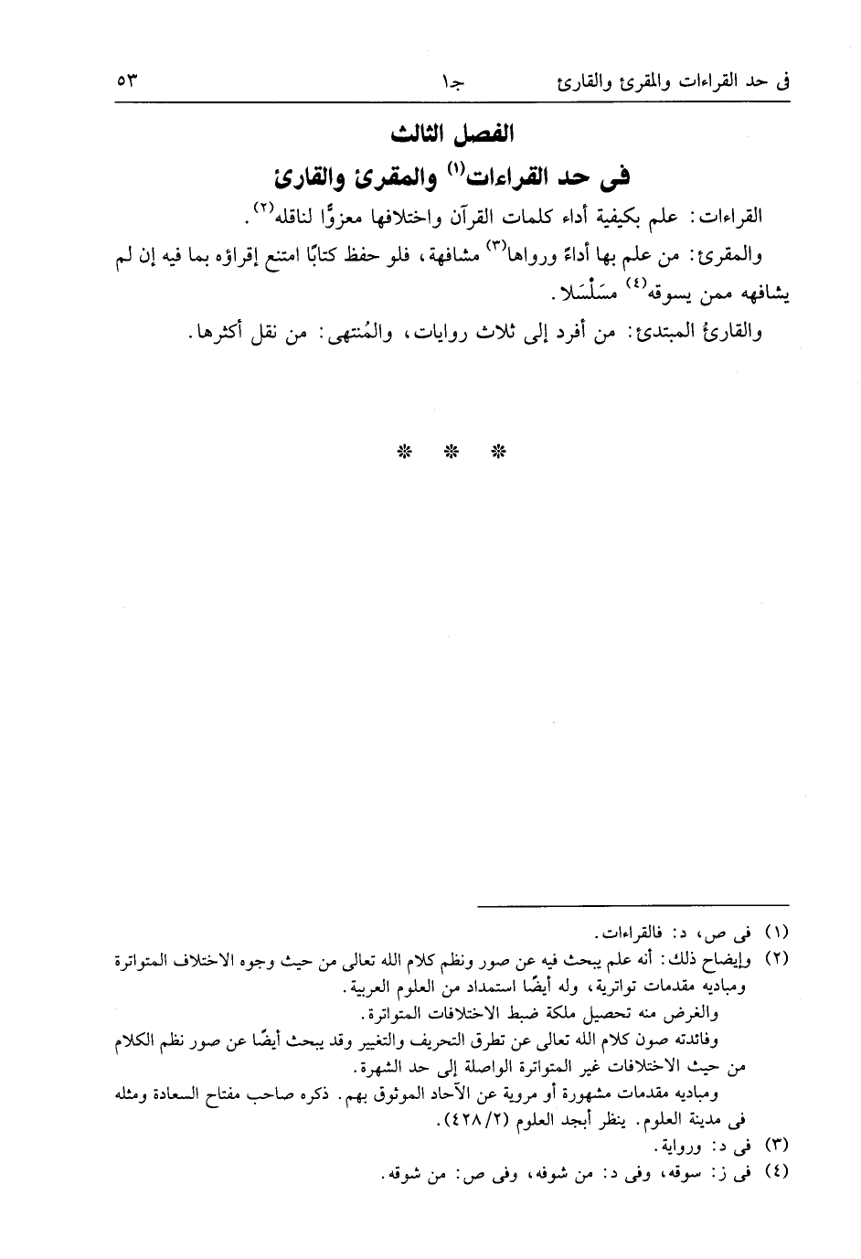 الفصل الثالث فى حد القراءات (¬1) والمقرئ والقارئ