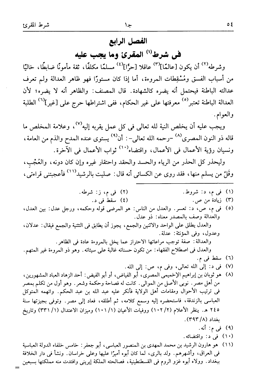 الفصل الرابع فى شرط (¬1) المقرئ وما يجب عليه