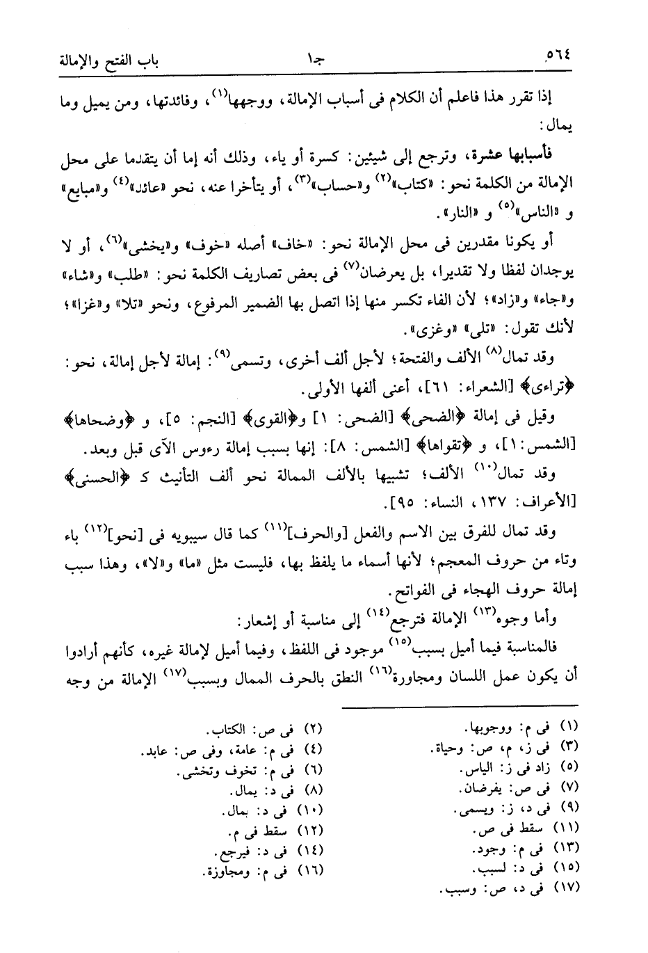وأما وجوه (¬13) الإمالة فترجع (¬14) إلى مناسبة أو إشعار: