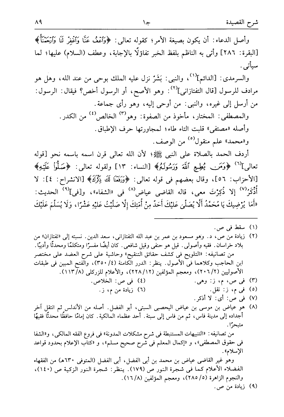 (¬2) زيادة من ص، د. وهو مسعود بن عمر بن عبد الله التفتازانى، سعد الدين. نسبته إلى «تفتازان» من بلاد خراسان. فقيه وأصولى. قيل هو حنفى وقيل شافعى. كان أيضا مفسرا ومتكلما ومحدثا وأديبا.